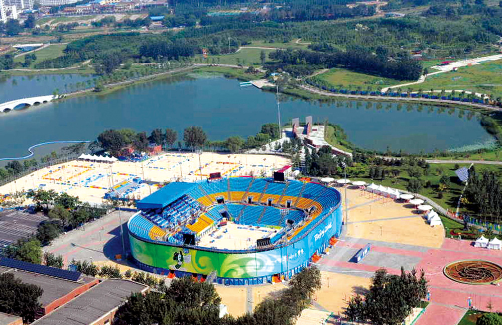 朝陽公園沙灘排球場為2008年北京奧運場館工程,位于北京市朝陽區(qū)朝陽公園內(nèi),整個工程由以下項目組成:一座12000座位的比賽臨時場館、兩塊熱身場地,其中一塊配200座位的媒體專用席位、六塊訓練場地、三座既有建筑物改造工程、室外廣場、道路硬化、市政管線等,工程包括2萬㎡人造沙灘和7萬㎡廣場地面塊材鋪設。河北省第四建筑工程有限公司施工總承包。