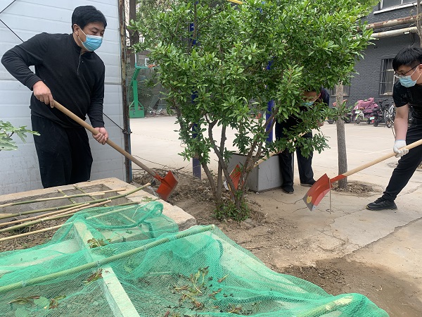 下午一點半,還沒到集合時間,黨員們已經(jīng)在辦公樓下領(lǐng)取工具,有序排隊,整裝待發(fā)。經(jīng)過分公司黨總支書記孫立鋒簡單的講話和小組分工后,大家各自拿著掃帚、鐵鍬等工具投入到負(fù)責(zé)的區(qū)域。首先大家對院內(nèi)路面、綠化帶、車棚、門廳、大門洞等區(qū)域進(jìn)行了打掃和清理。勞動過程中,分公司班子成員分成四隊,孫立鋒帶頭負(fù)責(zé)打掃職工活動室周邊以及車棚的犄角旮旯,主任會計師孫春泉帶頭負(fù)責(zé)打掃辦公樓東側(cè)死角位置,開發(fā)副經(jīng)理高青帶頭打掃樓后狹窄過道,主任經(jīng)濟(jì)師孔艷艷帶頭擦拭門洞宣傳欄、清理花池中的枯枝、雜草。長期“飽經(jīng)風(fēng)霜”的門洞宣傳欄一層塵土,孔艷艷全然不顧塵土飛揚,踩著凳子擦拭高處。在清理車棚衛(wèi)生時,為達(dá)到更好的清理效果,需要將每輛車移位,搬動電瓶車是個力氣活,開發(fā)科科長許茂茂帶頭,將電瓶車一一來個“平穩(wěn)大挪移”,清出垃圾后車輛重新擺放整齊。