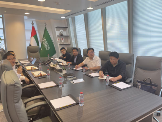 調(diào)研中,在中材海外公司項目部,張新煜與中材海外公司工程部部長呂威、項目經(jīng)理張懷偉進(jìn)行了溝通交流,深入了解了沙特未來建筑市場趨勢,以及在沙特成立分、子公司等方面情況,為規(guī)劃海外市場發(fā)展做好鋪墊。新邁克中東工程有限公司是中材海外公司在迪拜成立的中東子公司,張新煜專程拜訪了中材海外中東子公司總經(jīng)理劉渠東,雙方就中東市場發(fā)展前景進(jìn)行了交流探討,詳細(xì)了解了該公司在水泥EPC+、風(fēng)電新能源及節(jié)能環(huán)保、屬地化經(jīng)營投資等各項板塊的開發(fā)經(jīng)營模式,以及在中東地區(qū)承接項目應(yīng)具備的條件和注意事項等,大家溝通交流氛圍融洽,雙方表示將繼續(xù)加強(qiáng)合作,實(shí)現(xiàn)互補(bǔ),共同發(fā)展。