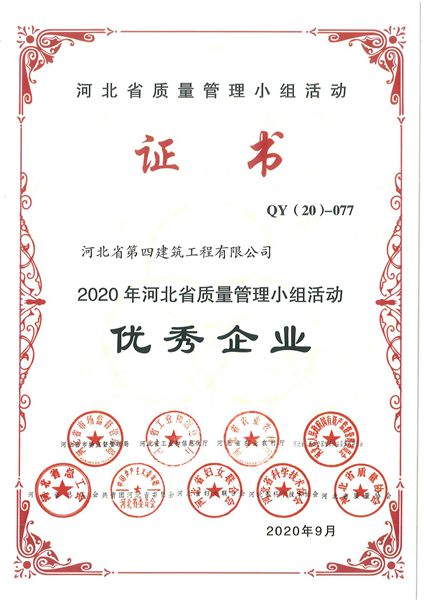 11月10日,公司收到中國建筑業(yè)協(xié)會《關(guān)于2020年工程建設(shè)質(zhì)量管理小組活動成果大賽的通知》和河北省質(zhì)量協(xié)會《關(guān)于印發(fā)2020年河北省質(zhì)量管理小組活動質(zhì)量科技成果及優(yōu)秀企業(yè)、卓越領(lǐng)導(dǎo)者、優(yōu)秀推進(jìn)者名單的通知》兩份文件。文件公布了各項(xiàng)榮譽(yù)的獲獎名單,公司獲得2020年河北省質(zhì)量管理小組活動優(yōu)秀企業(yè)。公司推薦的11個成果以及5個優(yōu)秀個人分別獲獎,3項(xiàng)成果獲得全國獎項(xiàng)。