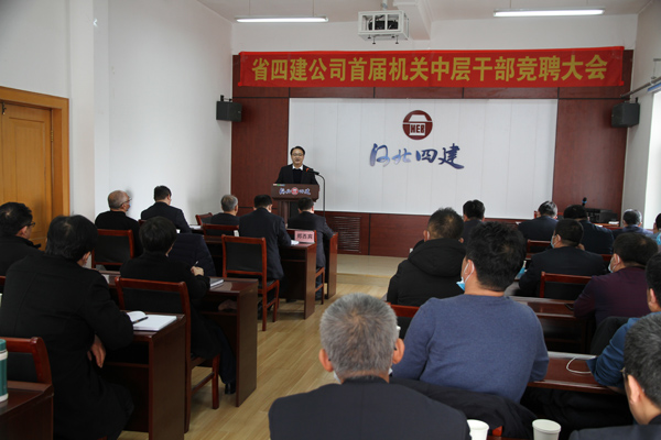 公開競聘選賢才,四建才俊展風(fēng)采。2021年2月24日,省四建公司首屆機關(guān)中層正職崗位競聘會在四樓培訓(xùn)中心舉行。30人(次)英才跨上講臺,暢談自己對11個中層正職崗位的履職目標(biāo)和創(chuàng)新舉措,為公司各部門的管理獻計獻策。這是公司成立以來首次機制改革大規(guī)模人才選拔考評活動。公司黨委書記董事長董富強發(fā)表開賽致辭和總結(jié)講話。公司黨委副書記、紀(jì)委書記、工會主席李懷生主持競聘大會。