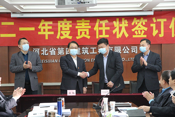 4月7日,公司舉行責(zé)任狀簽訂儀式,與分公司簽訂了2021年度經(jīng)營(yíng)管理責(zé)任書(shū)。2021年公司的主要發(fā)展目標(biāo)是,完成建安總產(chǎn)值120億元;簽約合同額確保140億元、力爭(zhēng)150億元。各單位要以時(shí)不我待的使命感和緊迫感,堅(jiān)持“控風(fēng)險(xiǎn)、上規(guī)模、提效益”的工作主基調(diào),圍繞責(zé)任書(shū)指標(biāo),在市場(chǎng)中開(kāi)拓新機(jī),在改革中挖掘潛能,創(chuàng)新管理,提高效益,為實(shí)現(xiàn)公司高質(zhì)量發(fā)展做出新的更大的貢獻(xiàn)?。ㄊ聵I(yè)發(fā)展部)