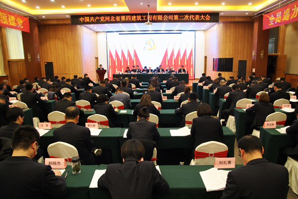當(dāng)日,中國共產(chǎn)黨河北省第四建筑工程有限公司第二次代表大會在石家莊市利淳商務(wù)酒店勝利召開。在預(yù)備會之后,大會在莊嚴(yán)的《國歌》聲中隆重開幕,96名黨員代表齊聚一堂,凝聚思想共識,共商黨建良策,共謀發(fā)展大計,共繪美好藍(lán)圖。集團(tuán)公司黨委書記、董事長、總經(jīng)理張?zhí)炱缴W臨會議并講話,集團(tuán)公司黨委辦公室主任、組織部部長張秋英、集團(tuán)公司紀(jì)委副書記、紀(jì)委辦公室主任、監(jiān)督檢查室主任張煜出席大會并全程指導(dǎo)。會議先后由公司黨委副書記、總經(jīng)理唐志強(qiáng),黨委副書記、紀(jì)委書記、工會主席李懷生主持。