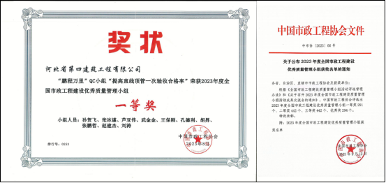 9月18日,公司收到中國(guó)市政工程協(xié)會(huì)《關(guān)于公布2023年度全國(guó)市政工程建設(shè)優(yōu)秀質(zhì)量管理小組獲獎(jiǎng)名單的通知》文件,公司推薦參賽的成果獲得一等獎(jiǎng)。