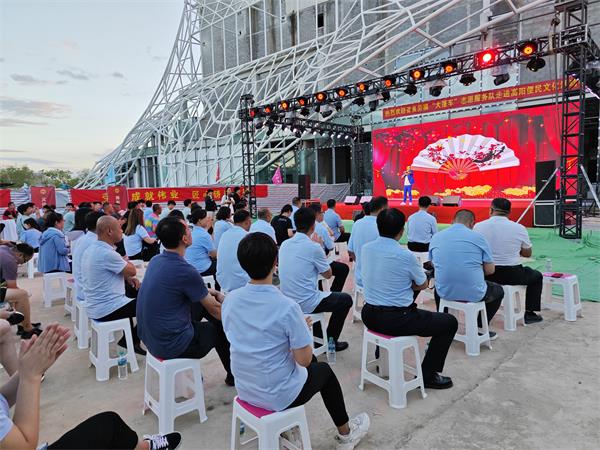 據(jù)悉,項(xiàng)目部高度重視此次志愿服務(wù)活動(dòng),統(tǒng)籌安排人員,積極與志愿服務(wù)隊(duì)對(duì)接,在施工現(xiàn)場(chǎng)規(guī)劃出一片場(chǎng)地,進(jìn)行清理和平整,供舞臺(tái)搭建使用。在活動(dòng)前一天,項(xiàng)目部在微信群內(nèi)發(fā)通知,將活動(dòng)內(nèi)容逐項(xiàng)說明,確保每一名職工知曉。為保證職工能夠按時(shí)觀看節(jié)目,項(xiàng)目部食堂準(zhǔn)備了便于食用的晚餐,并提前購(gòu)買了礦泉水、水果等放在現(xiàn)場(chǎng),方便大家隨時(shí)取用。