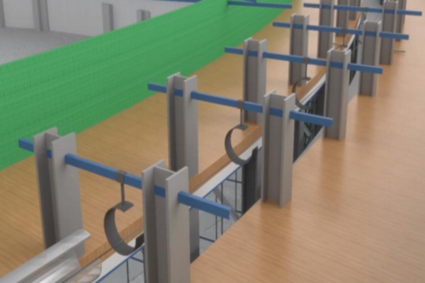 河北新彭楠焦化有限公司 251 萬噸/年焦化產(chǎn)能整合及減量項目部和安徽珍珠水泥集團股份有限公司4000t/d新型干法水泥熟料生產(chǎn)線項目部,依托項目大直徑預(yù)應(yīng)力筒倉施工,成立了專門的課題實施小組,利用AotoCAD、Revit等軟件,進行BIM建模分析,確定改進方向,最終創(chuàng)新技術(shù)方法進行施工。在大直徑預(yù)應(yīng)力筒倉鋼絞線施工時,鋼絞線柔軟且易穿出庫壁,項目部利用直徑10mm薄壁鋼管作為軌道提前進行埋設(shè)固定,解決了鋼絞線在滑模施工時穿設(shè)出軌的問題,同時又減少了人工,加快了施工速度,在保證安全的前提下降低了施工成本。在此基礎(chǔ)上,項目部改進現(xiàn)有穿束作業(yè)工藝,采用雙向機械化穿束技術(shù),結(jié)合行程觸碰限位器精準控制穿束長度,大幅縮減了穿束時間,簡化了流程,降低了人力投入,減小了滑模平臺的承載力,提高了安全性。