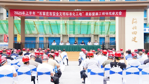 6月26日,2025年上半年“石家莊市安全文明標(biāo)準(zhǔn)化工地”表彰暨施工現(xiàn)場(chǎng)觀摩大會(huì)在二分公司西三教城中村改造回遷項(xiàng)目舉行。石家莊市住房和城鄉(xiāng)建設(shè)局副局長(zhǎng)蘇西彥、河北省建筑業(yè)協(xié)會(huì)副會(huì)長(zhǎng)李同澤、石家莊市建筑協(xié)會(huì)執(zhí)行會(huì)長(zhǎng)王洪祥、石家莊市建筑協(xié)會(huì)安全專業(yè)委員會(huì)秘書(shū)長(zhǎng)劉振波、河北建工集團(tuán)安全管理部部長(zhǎng)柴竑、公司副總經(jīng)理劉金河,石家莊市住建集團(tuán)建筑工程有限公司安全主管、石家莊市建筑協(xié)會(huì)安全專業(yè)委員會(huì)副秘書(shū)長(zhǎng)王靜等領(lǐng)導(dǎo),以及來(lái)自全市建筑行業(yè)近200名同仁參與會(huì)議并觀摩。