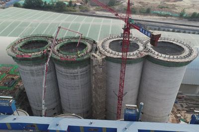 水泥礦粉及儲存庫由兩個連體庫組成,庫壁高35.05米、內(nèi)徑15米,滑模施工在7月下旬正式開始。業(yè)主為了搶回疫情耽誤的工期,要求庫壁滑模必須在9月30日以前完成。項目部積極面對,多措并舉,克服了工期緊張、雨季施工以及滑模質(zhì)量控制等諸多困難,最終按照業(yè)主要求提前完成了滑模任務(wù),得到了業(yè)主和監(jiān)理的一致好評。
