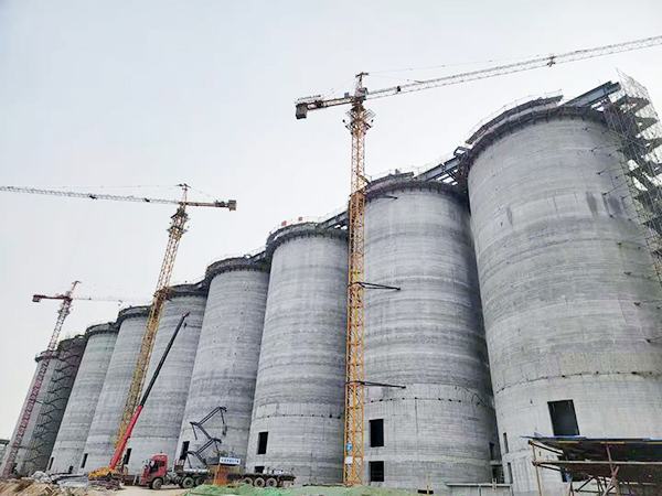 2月28日,A9筒倉準備滑模,作業(yè)工人冒雨加班僅用4天完成滑模機具的組裝。3月16日,A1筒倉鋼梁開始吊裝,項目班子、安全員以及監(jiān)理、甲方的項目負責人集體旁站監(jiān)督,上午9點準時進行260噸履帶吊的試吊,確認無問題后僅用3小時完成主梁的倒運,隨即開始吊裝。3月27日,A9筒倉倉頂環(huán)梁澆筑完成,距離A線全線貫通邁出關鍵一步。4月17日,項目部率先完成A9筒倉與M101轉運站的軸線交接;4月18日,A8筒倉倉頂板澆筑完成,從壓型鋼板安裝到澆筑完成只用了3天時間,標志著A線筒倉全部封頂。隨后全面進入設備安裝階段,項目部頂住中央環(huán)保組進入銅冶鎮(zhèn)環(huán)保檢查的壓力,一手抓安全文明施工,逐項落實各項環(huán)保要求;一手抓設備安裝進度,加班加點趕工期,提前兩天完成甲方確定的工期節(jié)點。