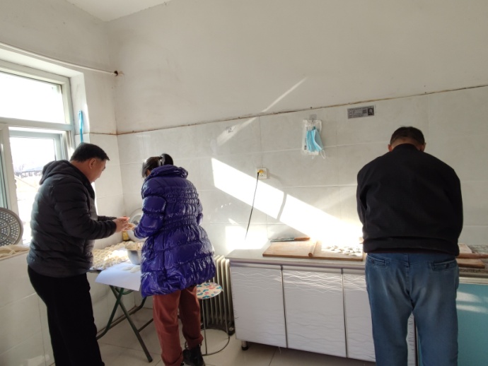 12月20日下午,租賃分公司經(jīng)理王建忠和副經(jīng)理葛利,計(jì)劃冬至包餃子為職工午餐增添花樣,同時(shí)安排好職工包餃子的準(zhǔn)備工作。21日早上,食堂工作人員提前活好面、剁好白菜……為包餃子做好準(zhǔn)備。