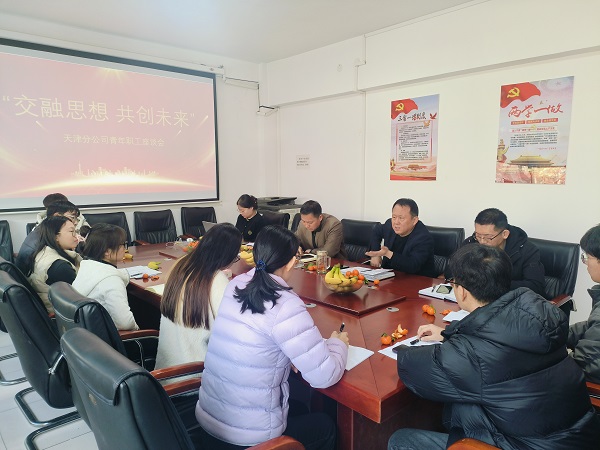 為進一步搭建青年職工與分公司領導間交流與分享的平臺,傾聽青年職工在工作、生活中的想法與困惑,激發(fā)他們的創(chuàng)新思維和工作熱情,促進青年職工與企業(yè)共同發(fā)展,2025年1月23日上午,天津分公司在會議室召開了以“交融思想,共創(chuàng)未來”為主題的青年職工座談會。經理李廣濤、黨支部書記臧聯(lián)合、主任經濟師張新廣以及9名青年職工齊聚一堂,圍繞職業(yè)發(fā)展、工作感悟等話題展開深入交流。